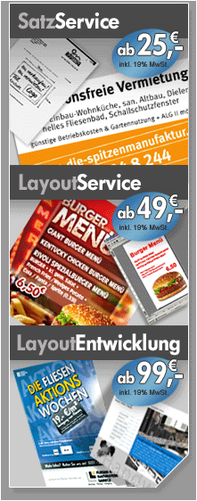 Die angegebenen Lieferzeiten werden bei rechtzeitigem Daten- u. evtl. Zahlungseingang mit der Wahrscheinlichkeit von ca. 96% eingehalten. Auf Grund von Überkapazitäten, Engpässen von Materialzulieferern oder den verschiedenen Auslieferungsmodalitäten der Paketdienste unterliegen die Lieferzeiten in Ausnahmefällen gewissen Toleranzen.